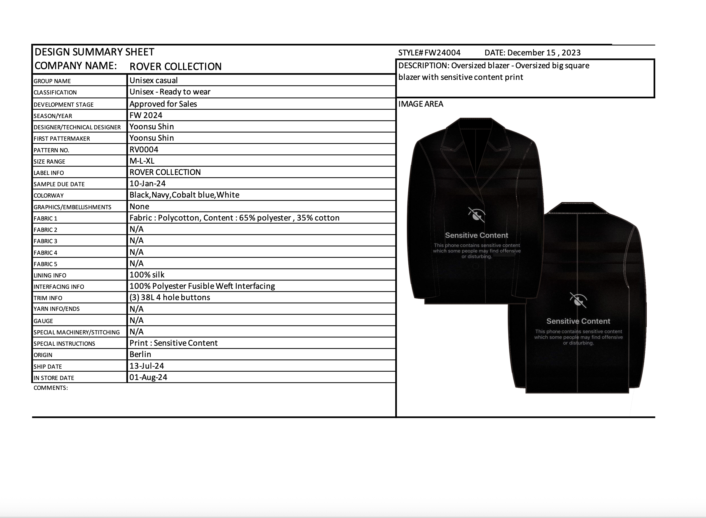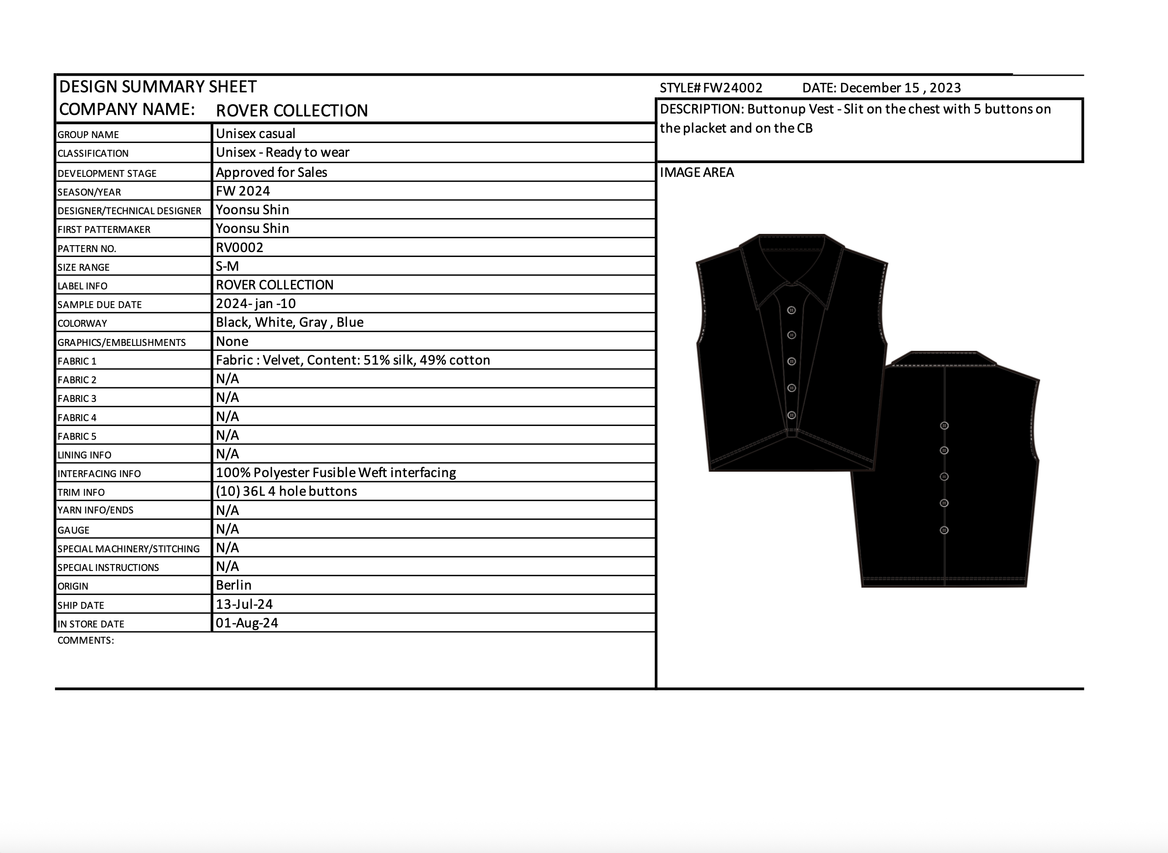 LINE PLAN SHEET